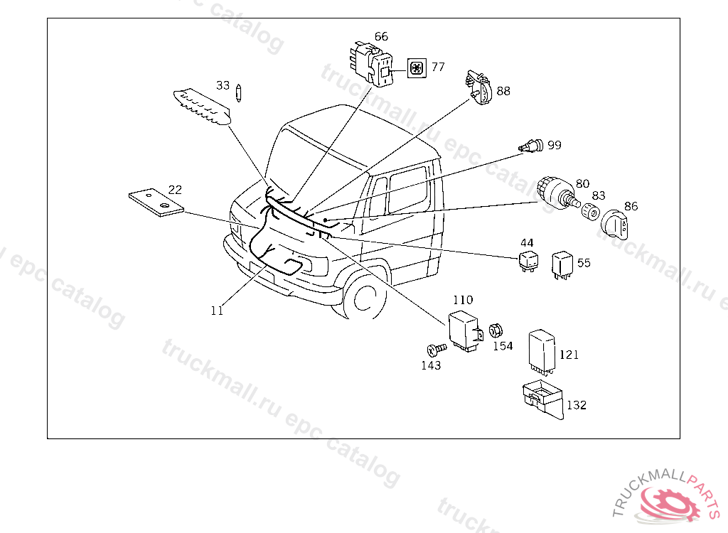 ELECTRIC CABLE FROM EVAPORATOR TO FRONT-END-MOUNTED BLOWER SWITCH & TO COMPRESSOR COUPLING, N 000001 P 055031