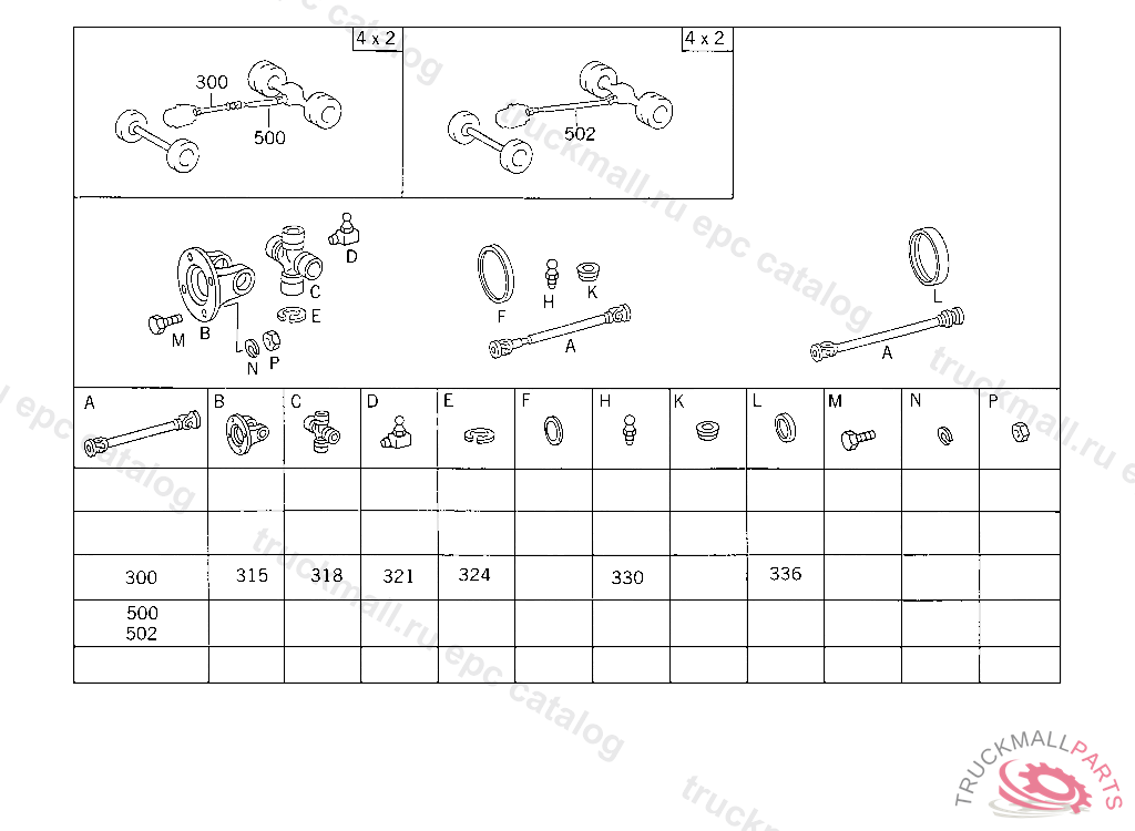 PROPELLER SHAFT FROM INTERMEDIATE BEARING TO REAR AXLE 1070 MM,4 609737 BEARING BUSHING O..D.,42 MM PART IS ONLY OR ALSO SUPPLIED AS RECONDITIONED PART