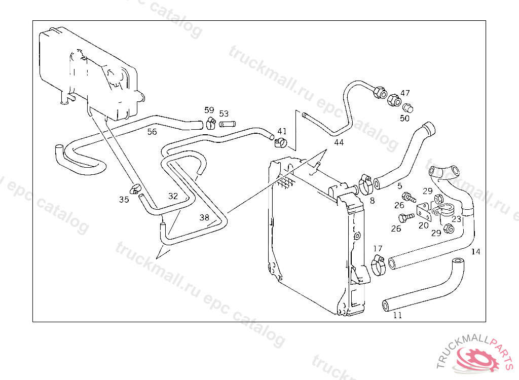 BREATHER LINE FROM ENGINE TO EXPANSION TANK,5 270332 UP TO IDENT NO.5 448662, FROM IDENT NO. 5 448663 SEE UNIT MICROFICHE