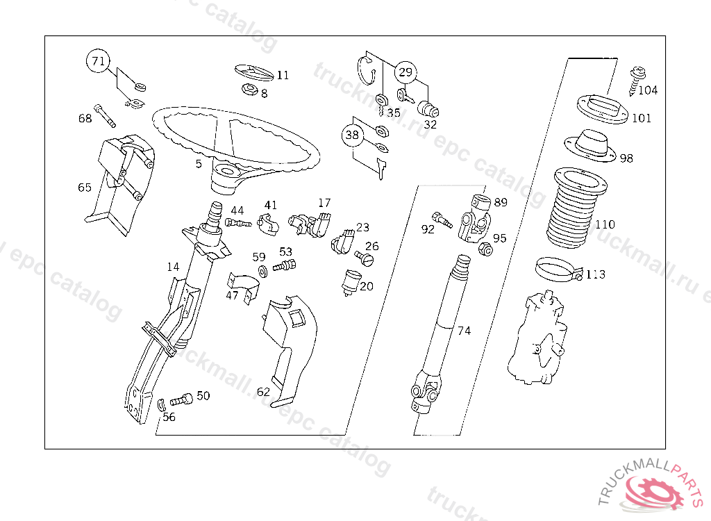 BEARING STEERING SHAFT, HOLE SPACING: 90/110 MM, TO BE ADAPTED DURING ASSEMBLY