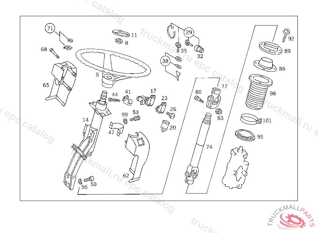 BEARING STEERING SHAFT, HOLE SPACING: 90/110 MM, TO BE ADAPTED DURING ASSEMBLY