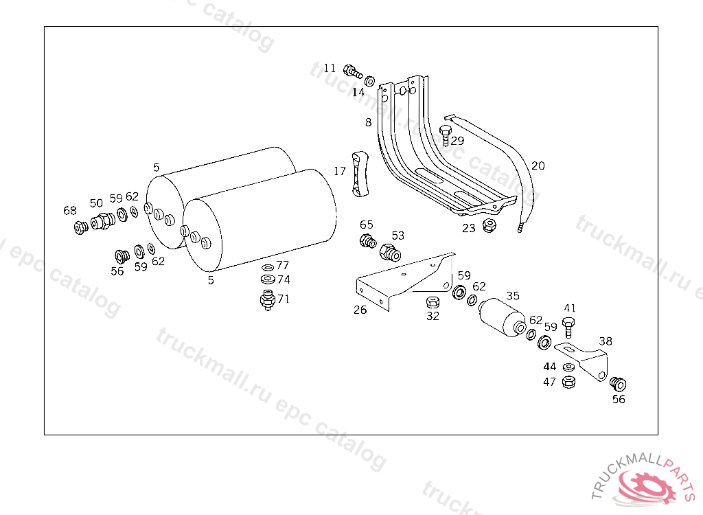 RESERVOIR COMPRESSED AIR 30 L, TO VOSS 232,5 9363665 812731 FOR VEHICLES WITH VOSS 230 CONNECTOR: ADD. MOUNT FITTING "A 004 997 82 72" WITH O-RING "A 000 987 04 46" AND THRUST RING "A 000 997 02 03" TO AIR RESERVOIR