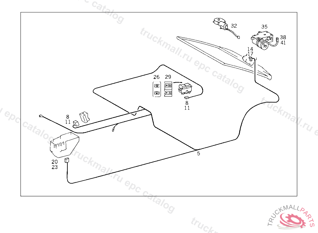 CABLE HARNESS REAR WINDOW ROLLER BLIND/CURTAIN, USED WITHOUT ELECTRIC SINGLE REAR SEAT ADJUSTMENT