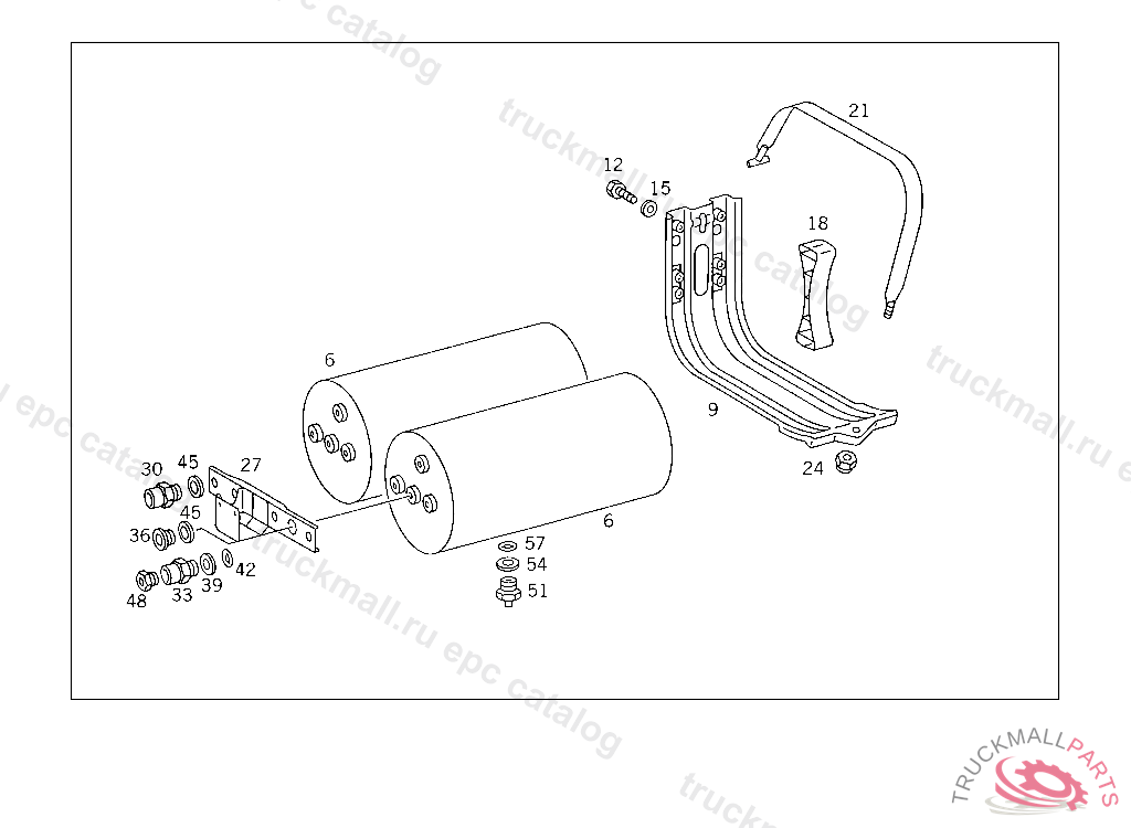 RESERVOIR COMPRESSED AIR 30 L, TO VOSS 232,5 9363665 812731 FOR VEHICLES WITH VOSS 230 CONNECTOR: ADD. MOUNT FITTING "A 004 997 82 72" WITH O-RING "A 000 987 04 46" AND THRUST RING "A 000 997 02 03" TO AIR RESERVOIR