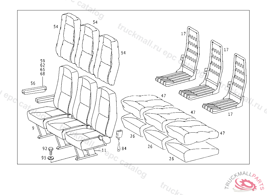 TRIPLE OCUPANCY SEAT. TRIPLE OCUPANCY 1ST ROW OF PASSENGER SEATS, TO BE PROCURED FROM MBA ONLY