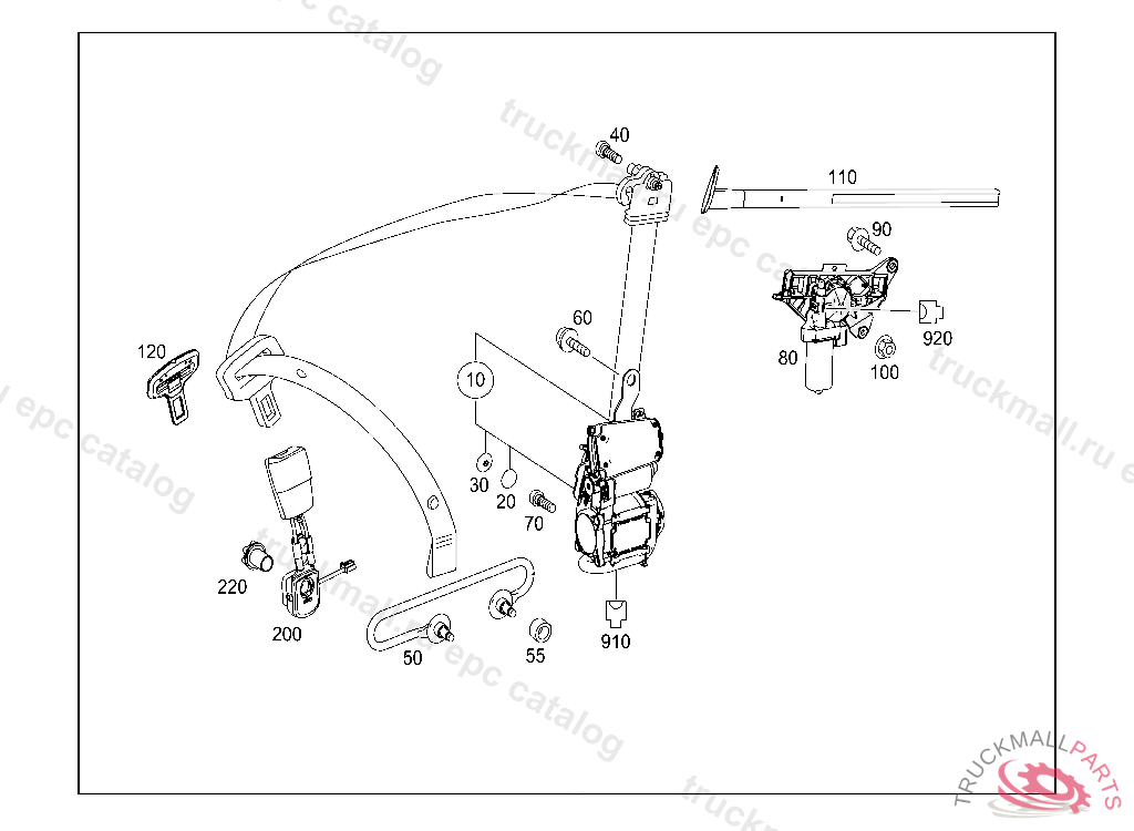 COMBINATION BOLT INERTIA REEL TO B-PILLAR, RIGHT