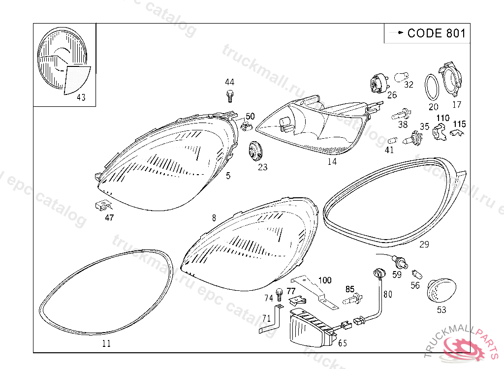 SEAL HIGH BEAM HEADLAMP, A 192209 ALSO INSTALLED ON A 159651 - A 192207 WITH CODE 856 AUSTRALIAFROM MODEL YEAR'95