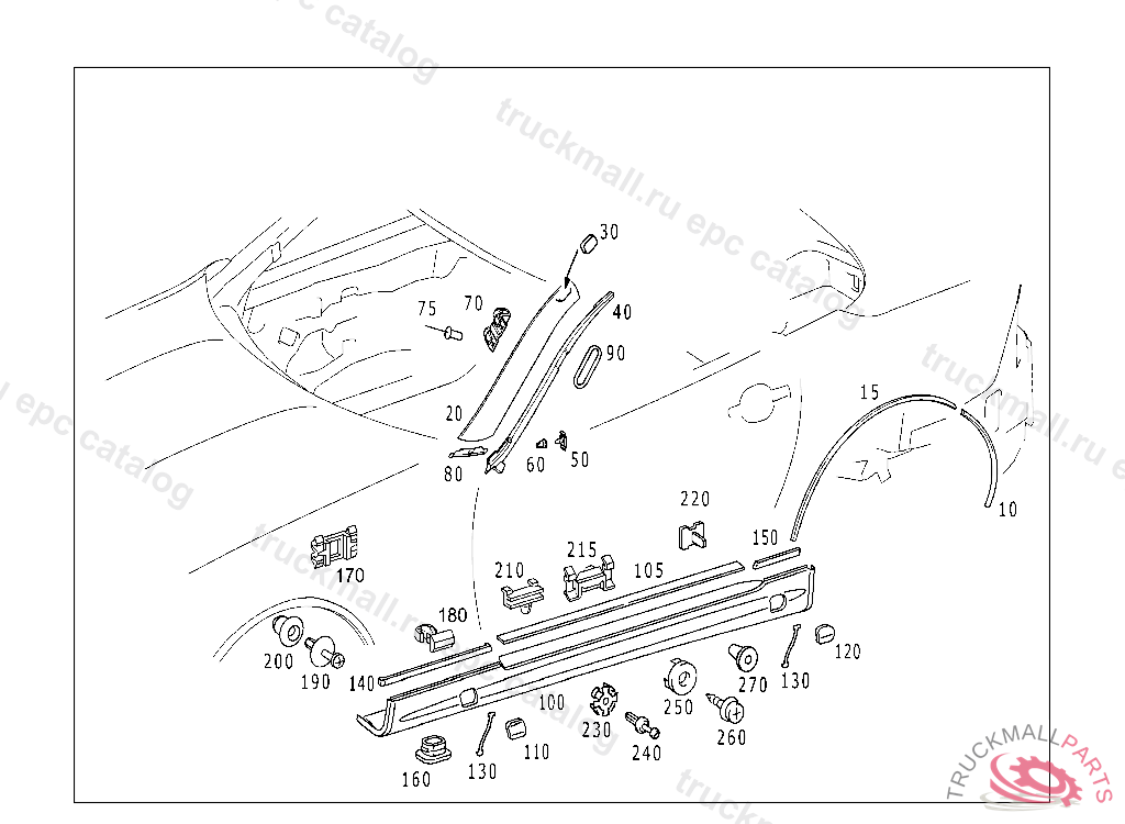 MOUNTING CLIP PANELLING TO SIDE MEMBER,TOP, F 619721 EXCEPT CODE 807 ALSO INSTALLED IN VEHICLE TO F 619720 WITH CODE 808