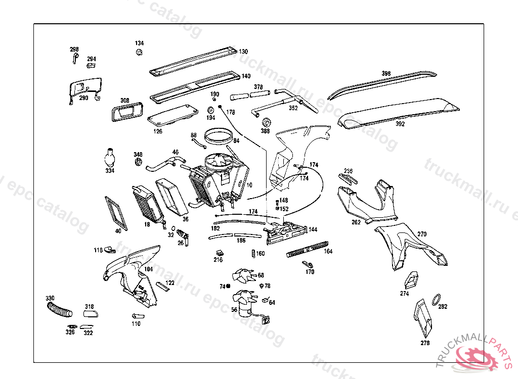 HEATER CASE , 002,003,005,011 UP TO CHASSIS 033574,EXCEPT FOR,SEE FOOTNOTE 002 20/60,22/62 RANGE OF DELIVERY INCLUDES:1 PIPE LINE 000 835 06 15