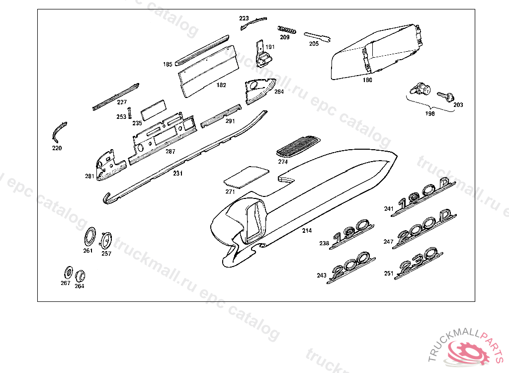 TYPE DESIGNATION AT INSTRUMENT PANEL "190", 000,001,004,010,UP TO CHASSIS 130557,100,101,104,110,UP TO CHASSIS 225647