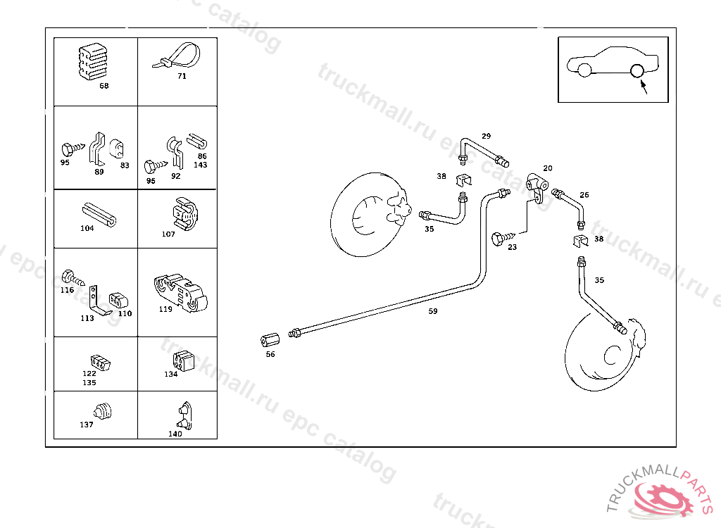 DAMPING STRIP BRAKE LINE TO FIRE WALL, 000 130186 003 066451 007 053318 083 002304 086 001762 093 001874 102,103 113215 105 135079 183 004049 190 005029