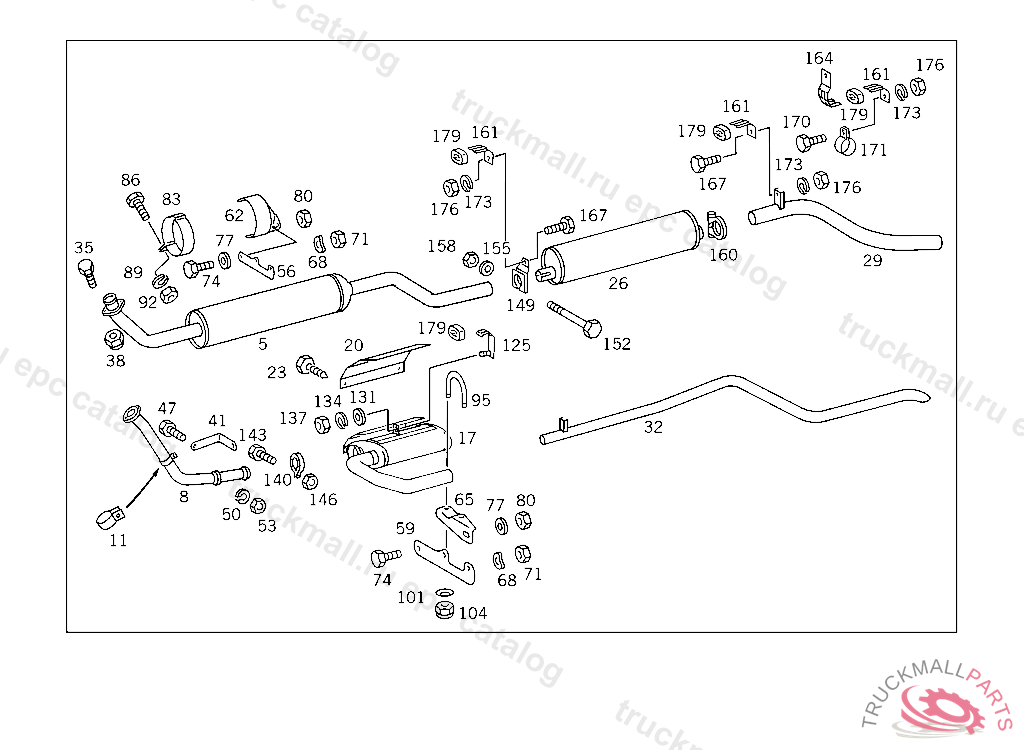 EXHAUST MUFFLER PRE-MUFFLER, FROM IDENT NO. 941506 ALSO INSTALLED ON 899081-941503 ONLY WITH OM601/OM602 ENGINEP 000001 USED FOR EXHAUST SYSTEM WITH PRE-MUFFLER