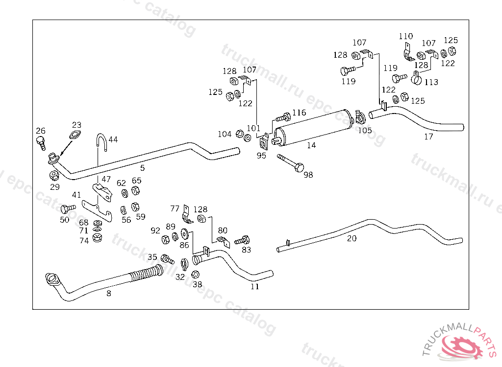 EXHAUST PIPE CENTRAL FRONT, FROM IDENT NO.941506 ALSO INSTALLED ON 899081-941503 ONLY WITH OM601/OM602 ENGINE P 000001 USED FOR EXHAUST SYSTEM WITH PRE-MUFFLER