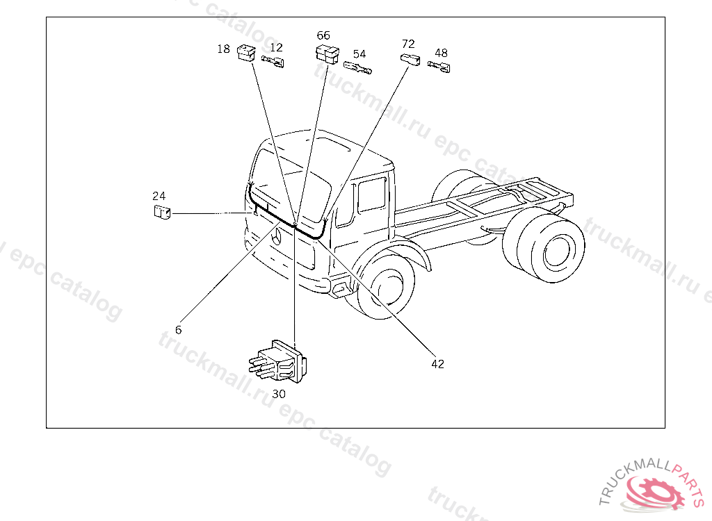 PIN BUSHING HOUSING. PLUG HOUSING FROM CHASSIS/CAB CONNECTION POINT TO TACHOGRAPH