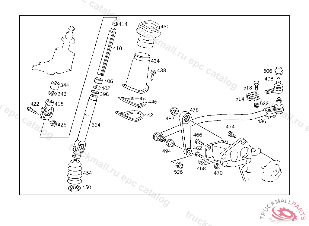 STEERING SHAFTLEMFOERDER, USED WITH SHORT MERCEDES-BENZ CAB