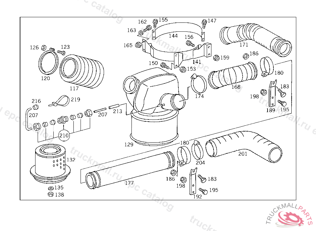 AIR INTAKE PIPE , FIRST EXHAUST STOCK OF OLD PARTS UP TO IDENT NO. 5 487913, Replaced By: A6215280282