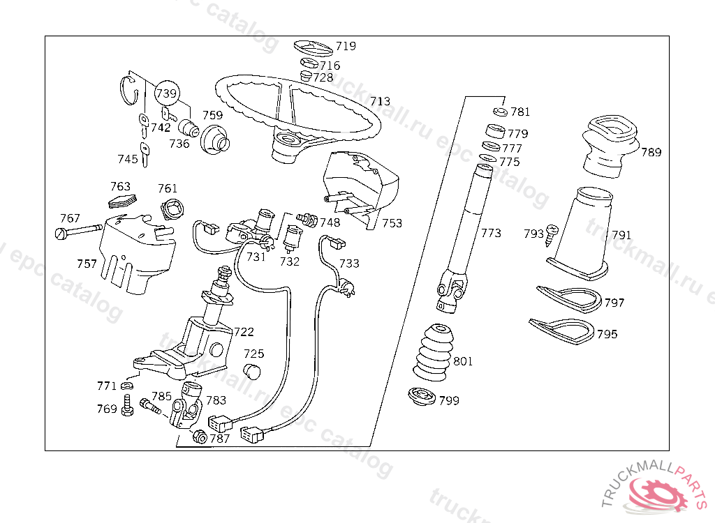 STEERING SHAFTLEMFOERDER, USED WITH SHORT MERCEDES-BENZ CAB
