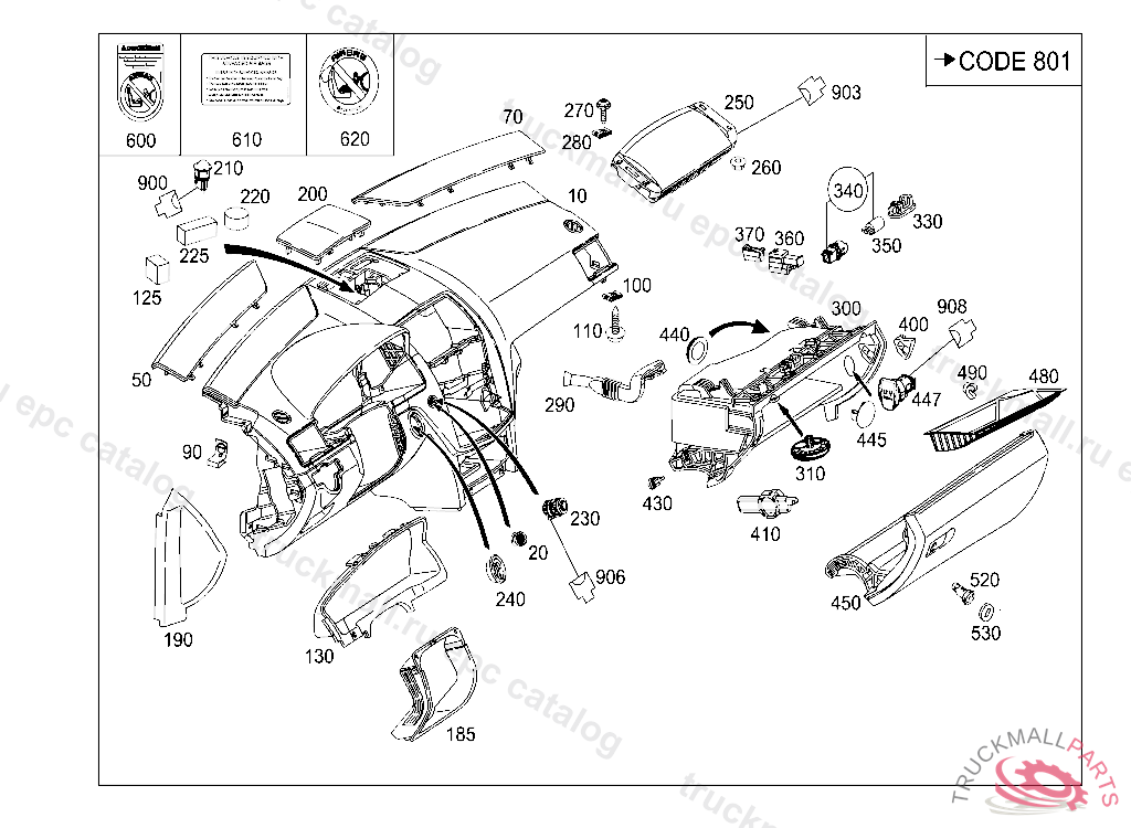 GLOVE BOX GLOVE COMPARTMENT, IMPORTANT: ADAPT HOUSING ON TAXI VERSION, Replaced By: A2046800110