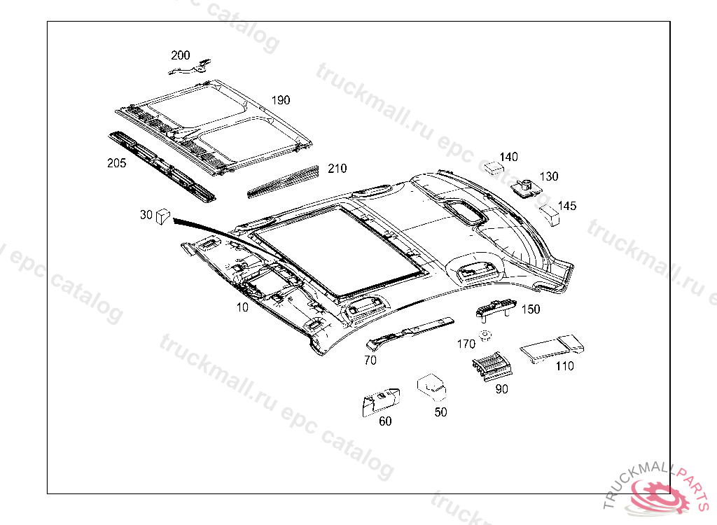 PAD REAR HEADLINER, A 37770720100129 L 03725420100131 V 00215420100131 F 47253820100129 R 10217620091023
