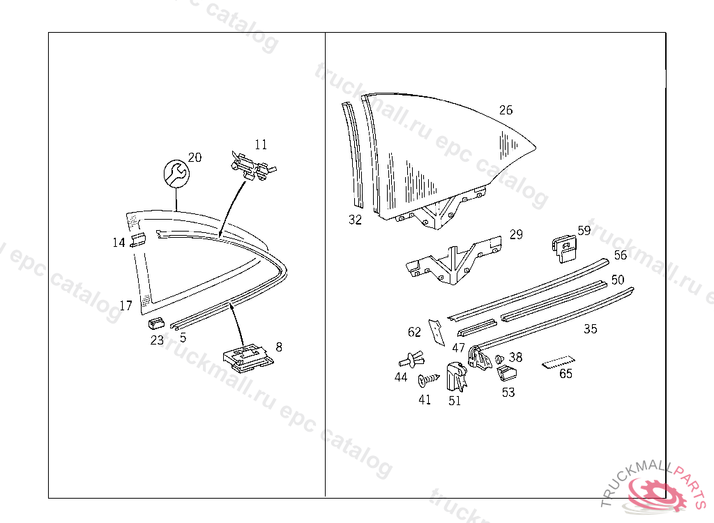 SIDE WINDOW LEFT, HEAT-ABSORBING GLASS GREEN, F 129678 T 028295 EXCEPT CODE 800 ALSO INSTALLED IN VEHICLE FROM F 129679, T 028296 WITH CODE 809