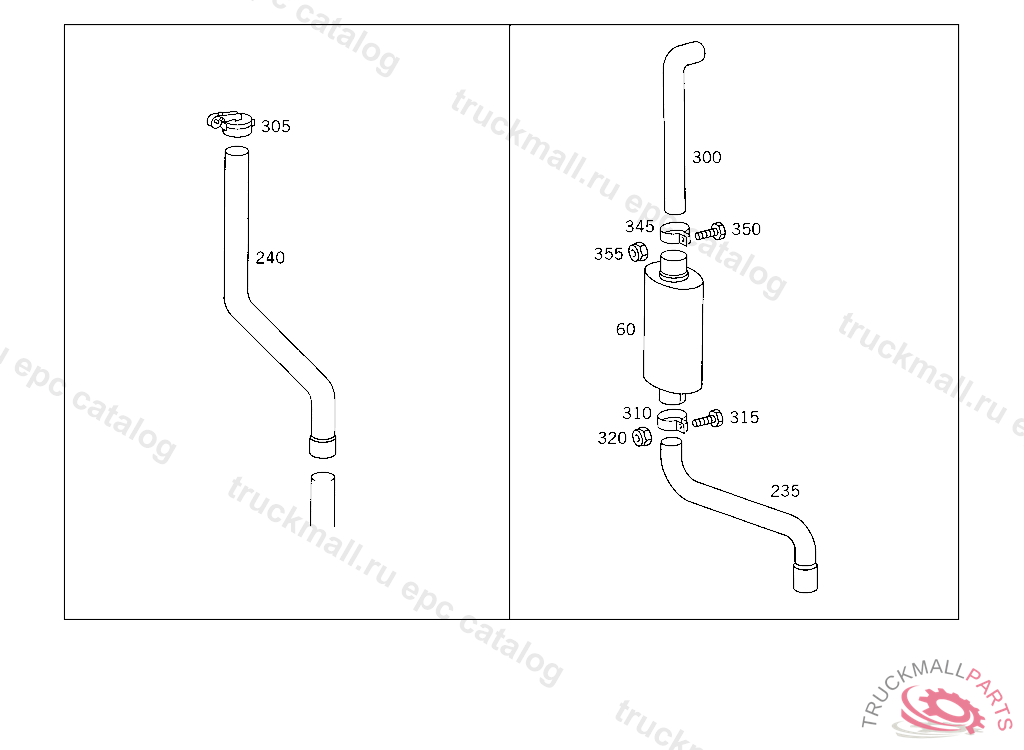 REAR EXHAUST PIPE FROM EXHAUST MUFFLER TO CAB REAR PANEL