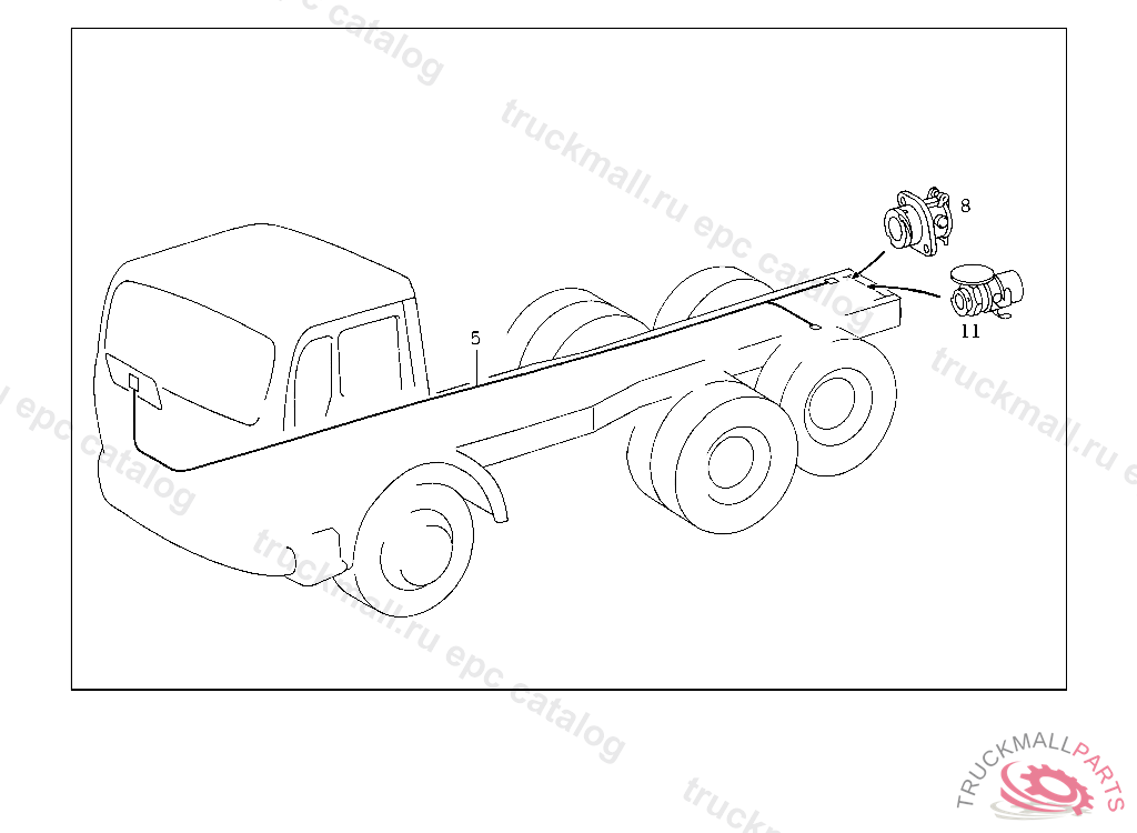 ELECTRIC CABLE FROM MODULES "L" AND "W" TO TRAILER PLUG-SOCKET, THIS CABLE HARNESS IS A COMPONENT OF FRAME MOUNTED CABLE HARNESS ASSEMBLY AND CAN BE MADE AVAILABLE AS A SPARE ATTENTION: WHEN PLACING ORDERS, PLEASE QUOTE VEHICLE IDENT NO. ONLY IF FRAME MOUNTED CABLE HARNESS IS REQUIRED AS AN ASSEMBLY