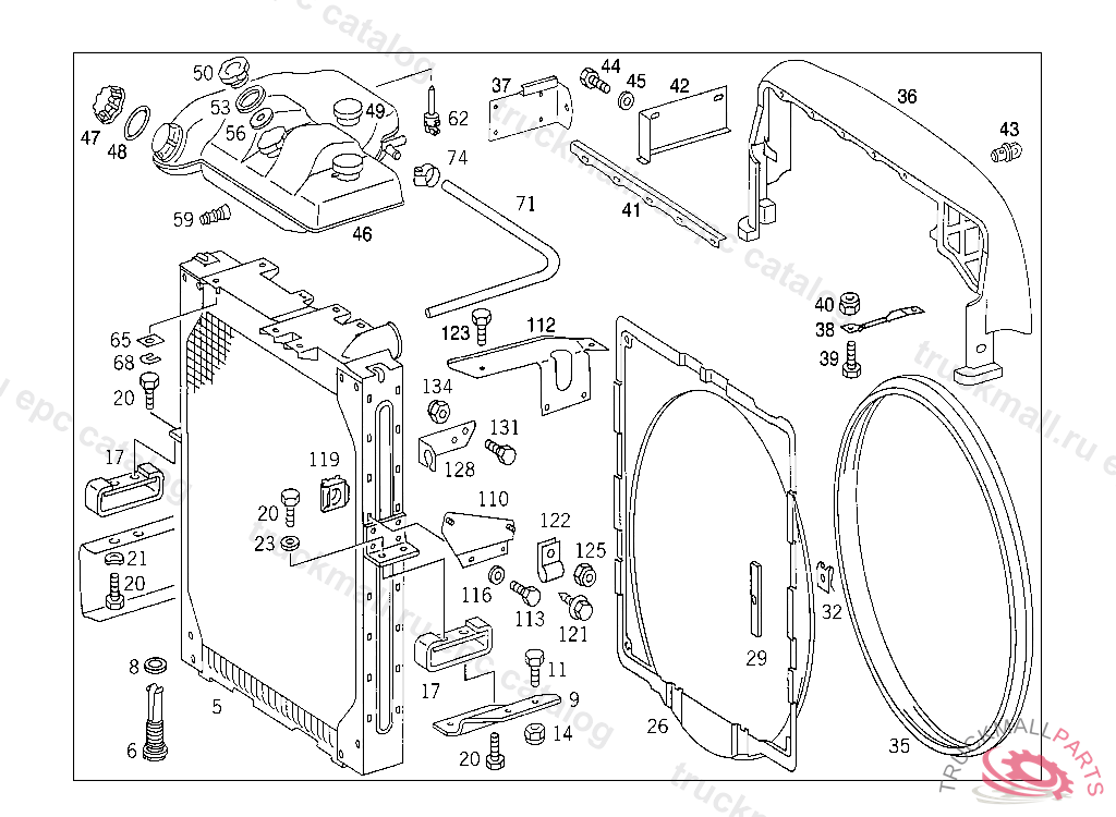 RADIATOR , FIRST EXHAUST STOCK OF OLD PARTS UP TO IDENT NO. 5 752618, Replaced By: A6555002103
