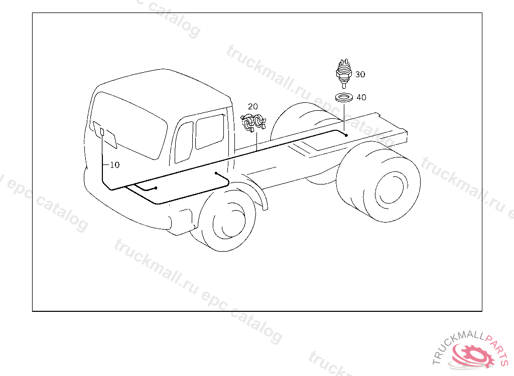 ELECTRIC CABLE FROM CAB PLUG CONNECTION TO TRANSMISSION/REAR-AXLE SENSOR, THIS CABLE HARNESS IS A COMPONENT OF FRAME MOUNTED CABLE HARNESS ASSEMBLY AND CAN BE MADE AVAILABLE AS A SPARE ATTENTION: WHEN PLACING ORDERS, PLEASE QUOTE VEHICLE IDENT NO. ONLY IF FRAME MOUNTED CABLE HARNESS IS REQUIRED AS AN ASSEMBLY