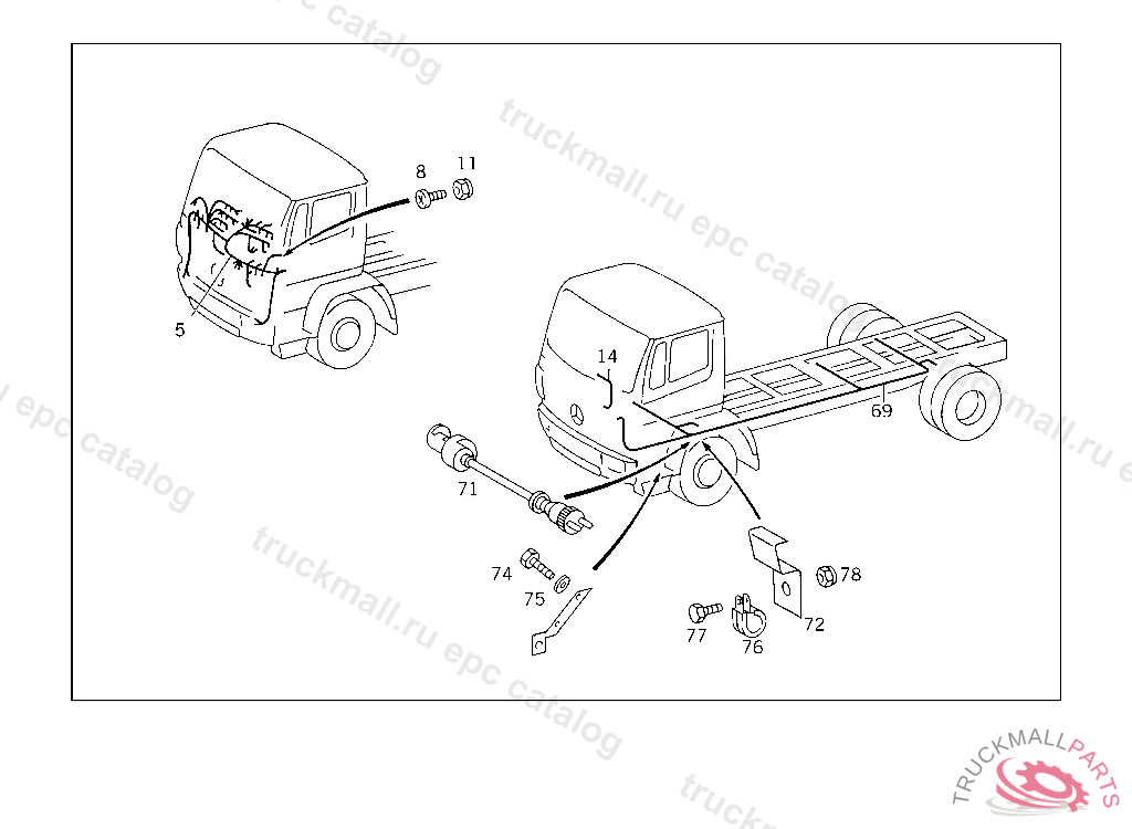 ELECTRIC CABLE FROM CHASSIS/CAB PLUG CONNECTION TO TELL-TALE LAMP,K 203492