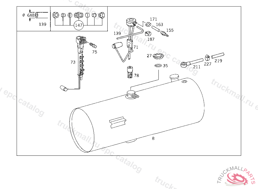 FUEL TANK , FIRST EXHAUST STOCK OF OLD PARTS UP TO IDENT NO. K 169122, Replaced By: A6524700101, +001A0005409917, +001A0115426017