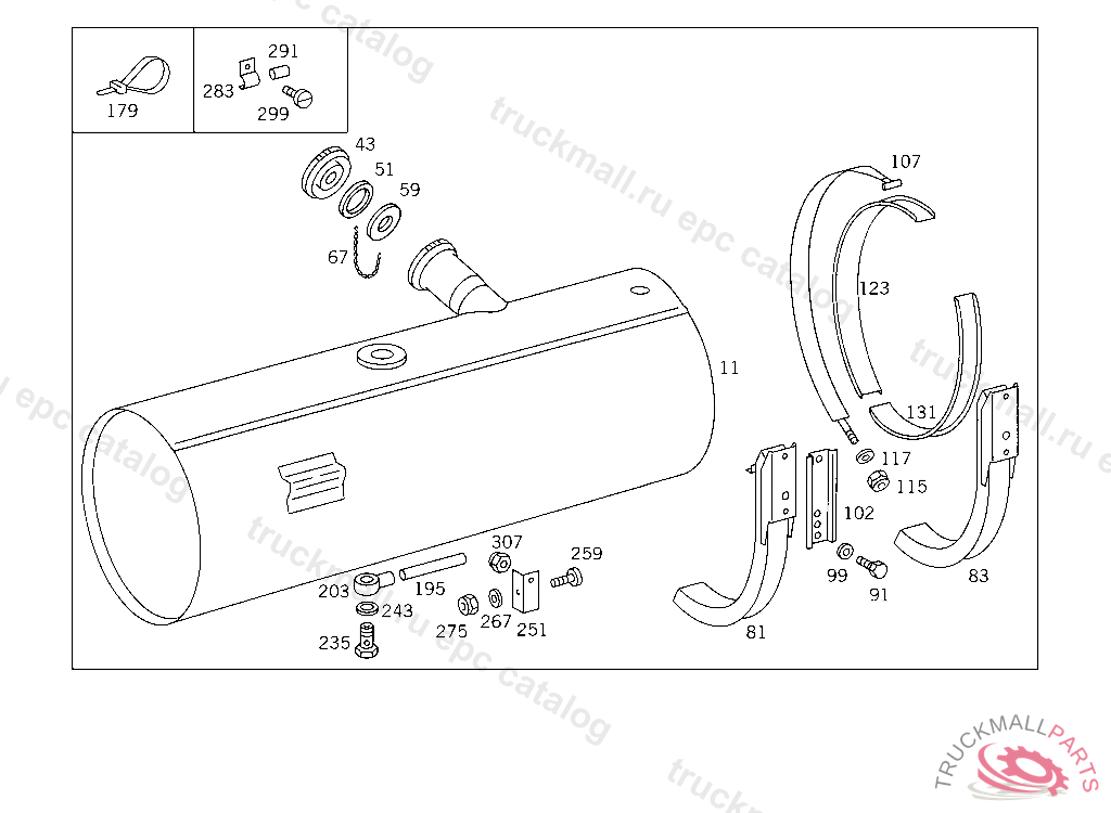 FUEL TANK , FIRST EXHAUST STOCK OF OLD PARTS UP TO IDENT NO. K 169122, Replaced By: A6524700101, +001A0005409917, +001A0115426017