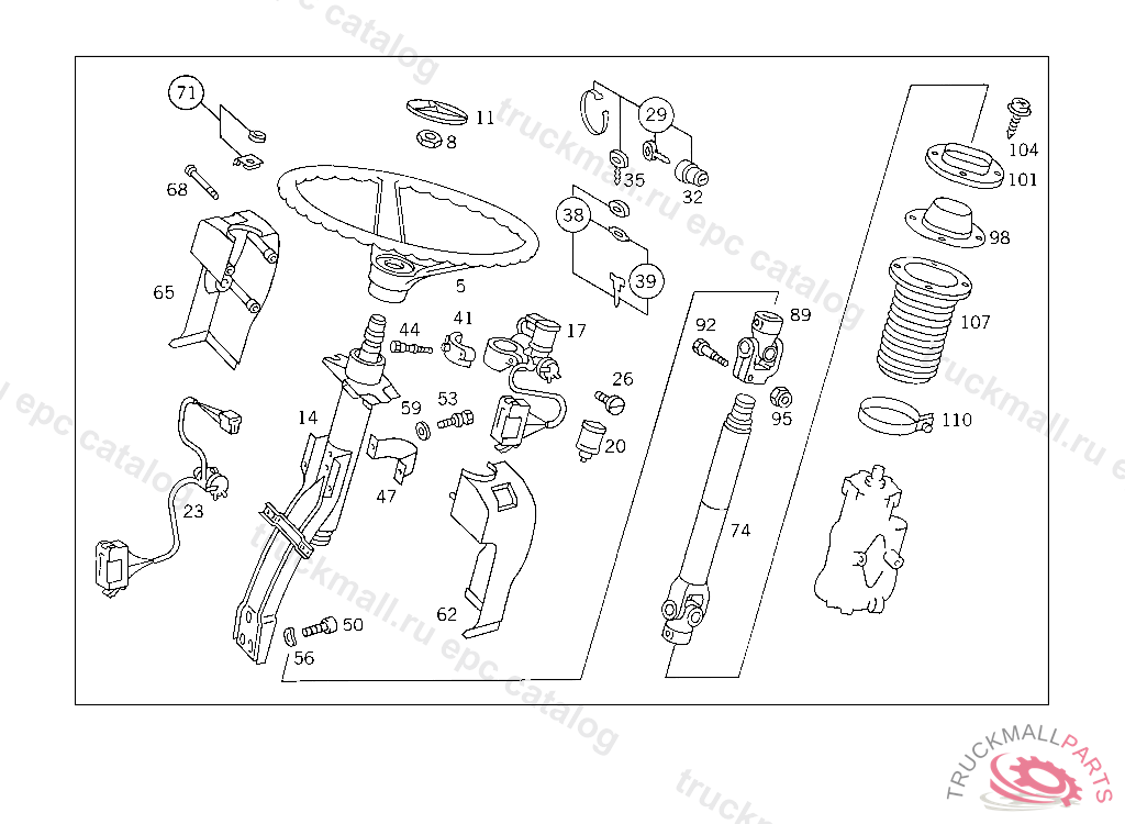 BEARING STEERING SHAFT, HOLE SPACING: 90/110 MM, TO BE ADAPTED DURING ASSEMBLY