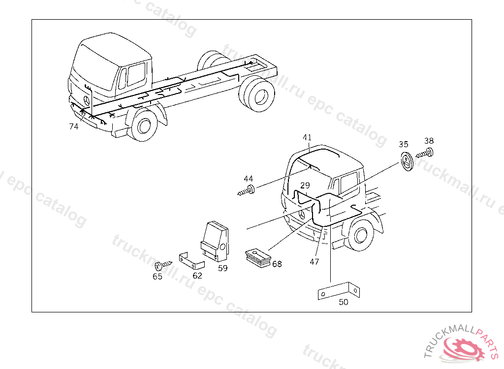 ELECTRIC CABLE FROM CAB PLUG-CONNECTION TO WASHER PUMP & TO CAB UNLOCKING MECHANISM
