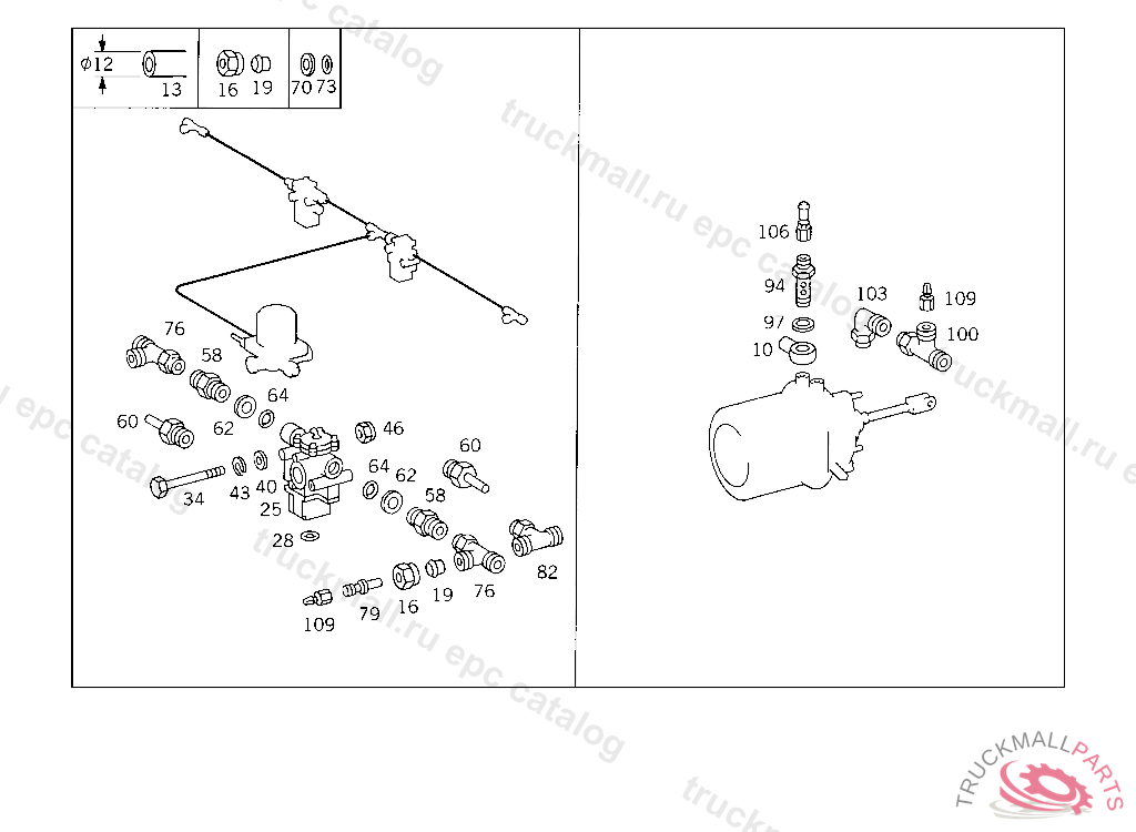 HOLLOW SCREW FITTING LEFT AND RIGHT COMBINATION CYLINDERS, CONNECTION: "11,12",5 356525