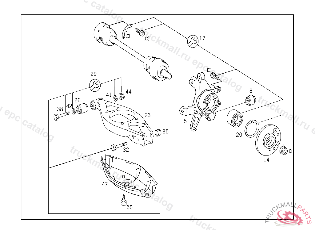 WHEEL CARRIER. WHEEL BEARING WITH LOWER CONTROL ARM JOINT AND WHEEL MOUNTING,LEFT, A 597177 X 007199