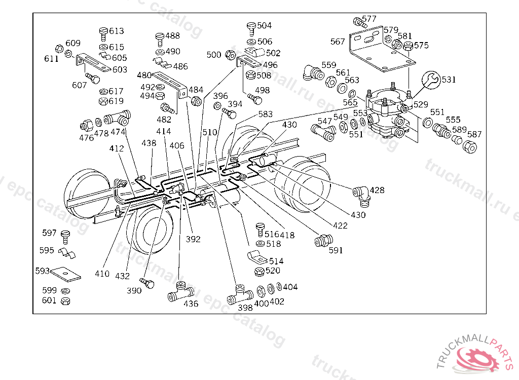REPAIR KITTO 001 430 58 81/59 81,WABCO, WITH HAND BRAKE VALVE ON ENGINE TUNNEL, FROM IDENT NO. SEE MF 26032