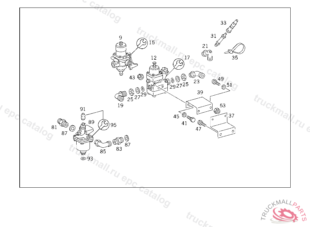 REPAIR KITTO 001 430 58 81/59 81,WABCO, WITH HAND BRAKE VALVE ON ENGINE TUNNEL, FROM IDENT NO. SEE MF 26032
