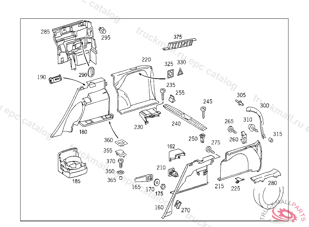ORNAMENTAL COVER AT WHEELHOUSE COVERING LEFT,WITH FOLDING SEATS, A 579167 X 006361NO.9B51I NO.5076I NO.8F20I NO.8F30I .......I NO.7101I NO.9B51I NO.9B51I NO.9B51I