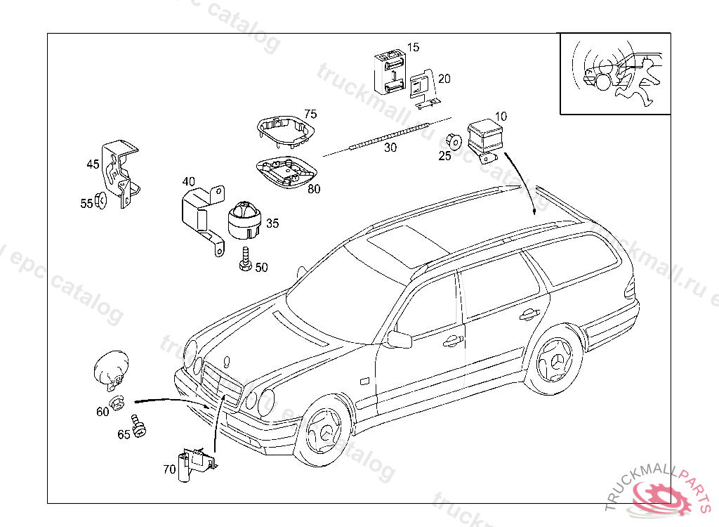 ALARM UNIT SIREN, F 136789(COUPE) T 000730(COUPE), T 054271(CABRIO) EXEPT ON VEHICULES WITH CODE 801 ALSO INSTALLED IN VEHICLE FROM T 000731(COUPE), T 054272(CABRI O), F 136790(COUPE) WITH CODE 800