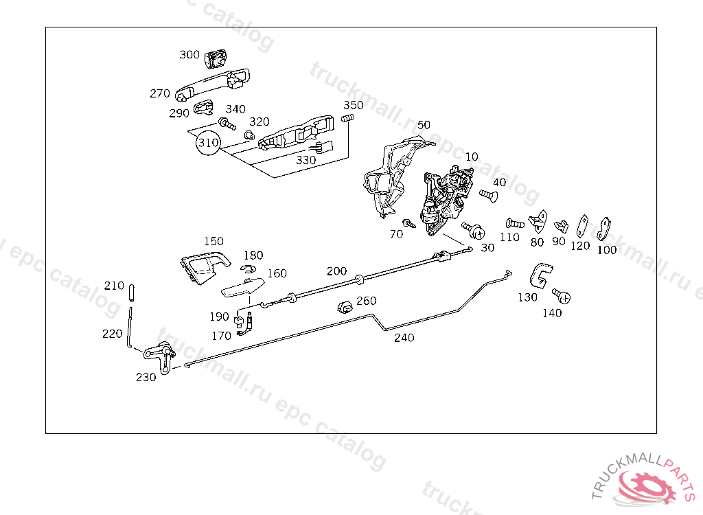 HANDLE REAR DOOR,RIGHT ELEGANCE/AVANTGARDE, 9999 008U/015U/017U/020U/022U/023U/024U/025U/026U/029U/030U/031U/032U/033U/034U/036UQFT210L0507 COLORLESS