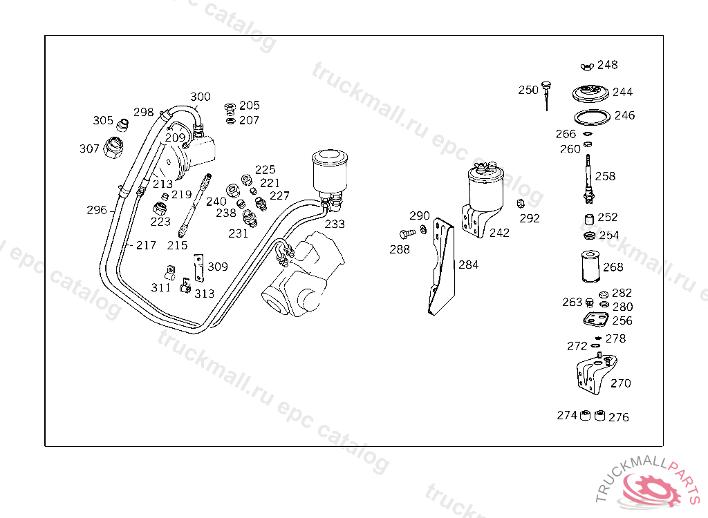 LINE FROM HOSE TO PUMP, OM352 FROM CHASSIS 783961,OM360 FROM CHASSIS 786071