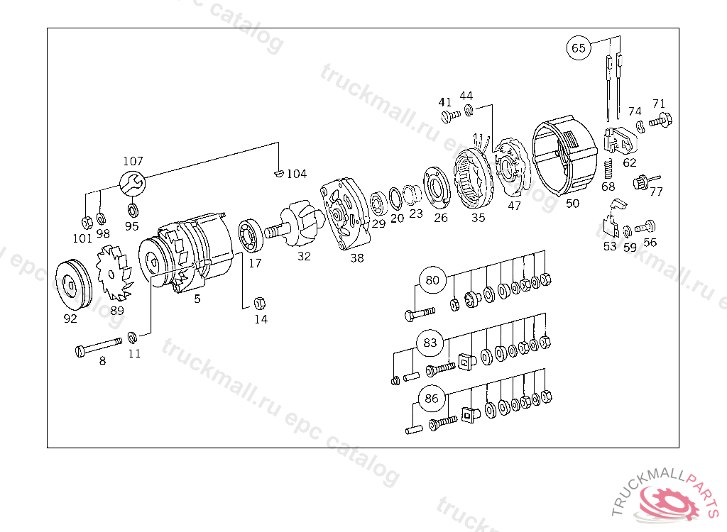 INSULATOR PARTS KIT B+,TO 376 150 78 50, MODEL 343.919.000 FROM ENGINE 154150,MODEL 344.919.000 FROM ENGINE 822957