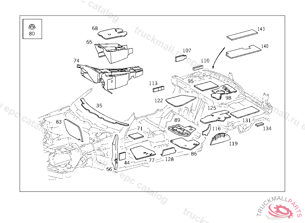 INSULATION TRANSMISSION TUNNEL,TOP, A 698508 X 012426 EXEPT FOR VEHICULES WITH CODE 808 ALSO INSTALLED IN VEHICLE TO A 698507, X 012425 WITH CODE 809