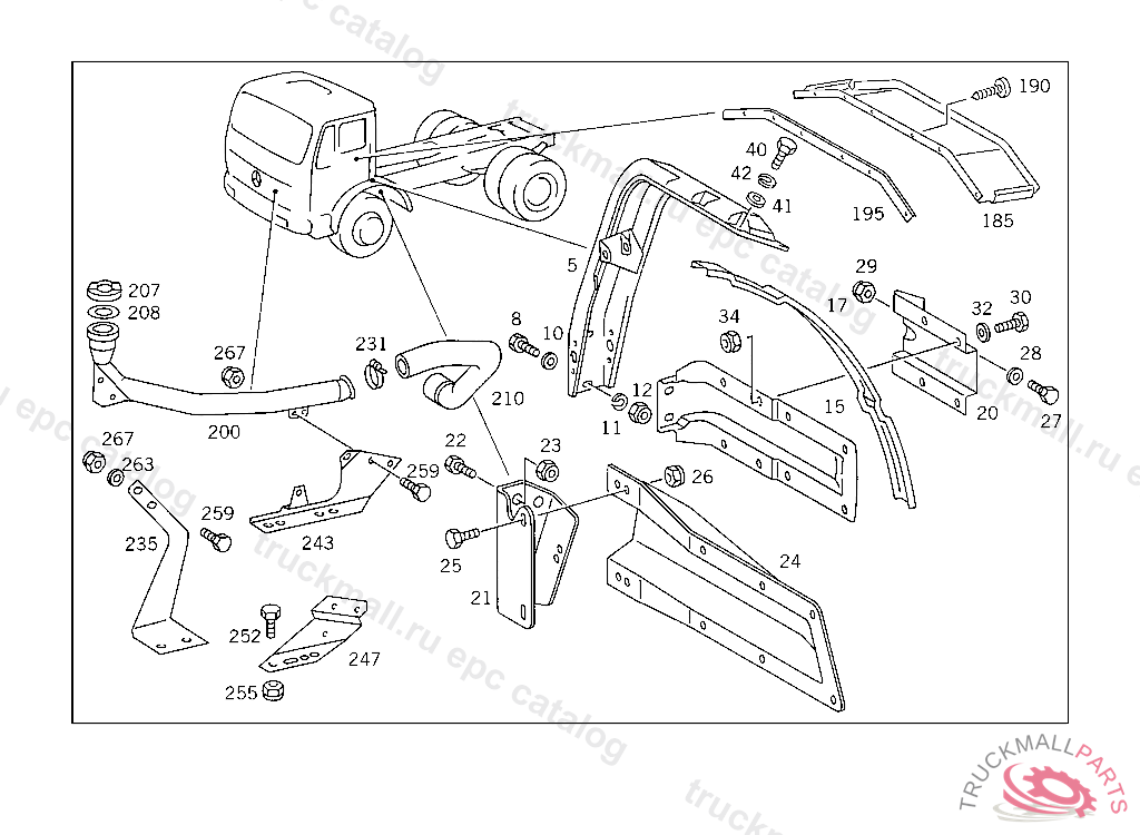 SUPPORT LEFT FENDER, WITH 385.068,069 ON VEHICLES WITH DB-CAB,ONLY ON 385.019 ONLY FOR VEHICLES HAVING NO MERCEDES-BENZ PLATFORM