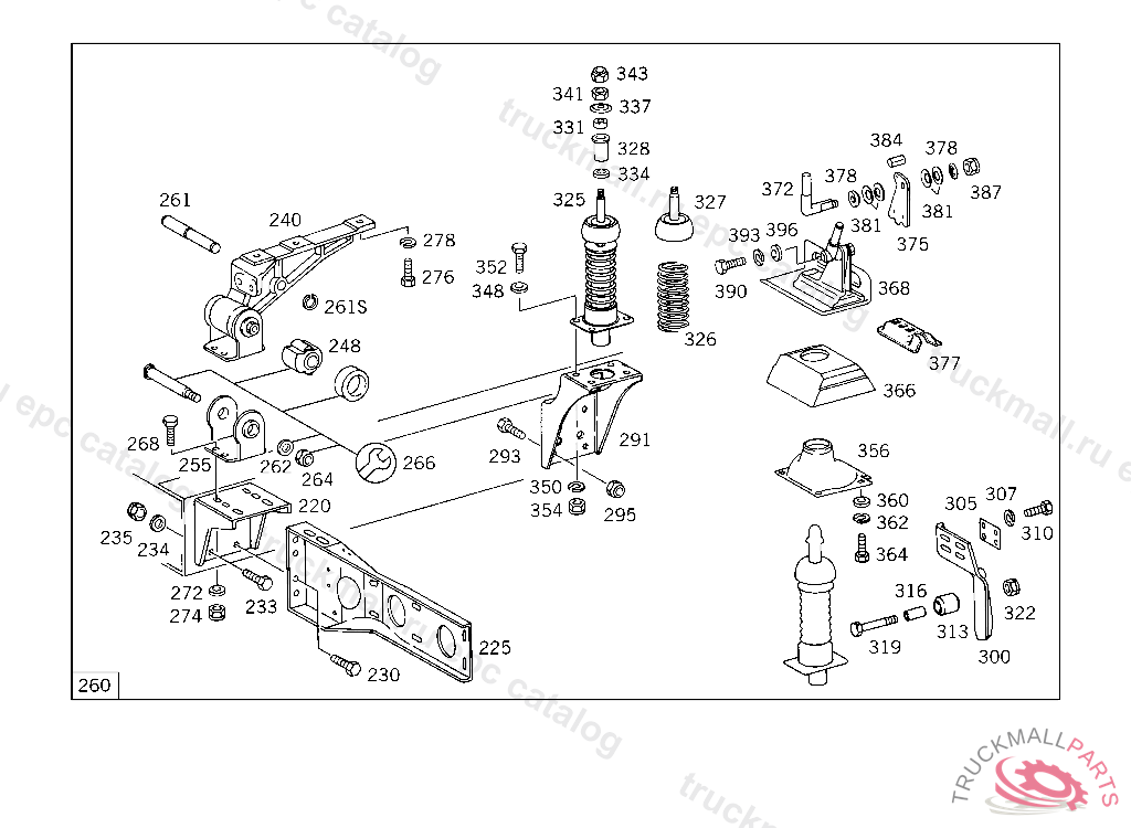 GUIDE CAB SUSPENSION,REAR RIGHT, 385.068,069 ON VEHICLES WITH DB CAB ONLY 385.019 FOR USE WITH SHORT MERCEDES-BENZ CAB5 204965