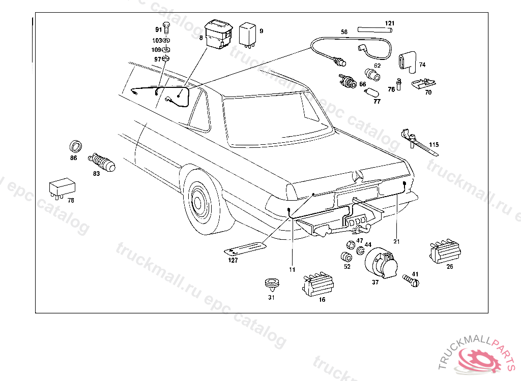 CABLE HARNESS REAR, FROM CHASSIS NEW EQUIPMENT 9/85