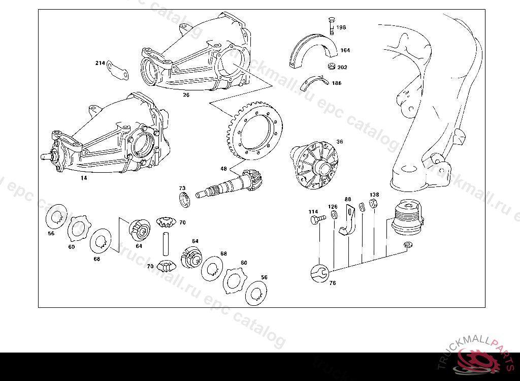 AXLE HOUSING REAR AXLE HOUSING WITH DIFFERENTIAL 1:3,27, 126.032,033 007364 ALSO INSTALLED ON 007123,007125,007141,007143,007145,007147,007149-007153,007155,007156,007158-007164,007166-007168, 007170-007175,007177-007194,007196,007200-007203,007205-007229,007231,007233-007244,007246-007248, 007250-007264,007266-007268,007270,007273,007275-007294,007296-007304,007306-007314,007316-007326, 007328-007337,007339-007343,007345-007358,007360-007362. EXCEPT FOR 007427,007469,007478 PART IS ONLY OR ALSO SUPPLIED AS RECONDITIONED PART