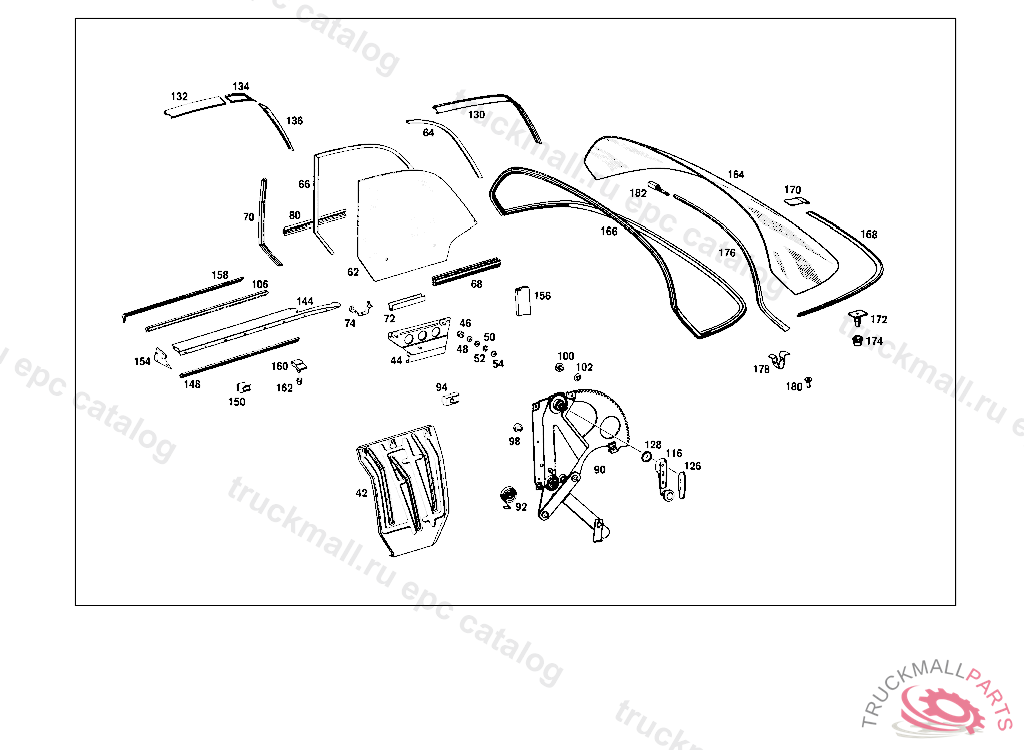 WINDOW REGULATOR , 024/025 UP TO CHASSIS 004624, 026/027 UP TO CHASSIS 000515, Replaced By: A1116737003, +002A1237600102, +002A1237600020