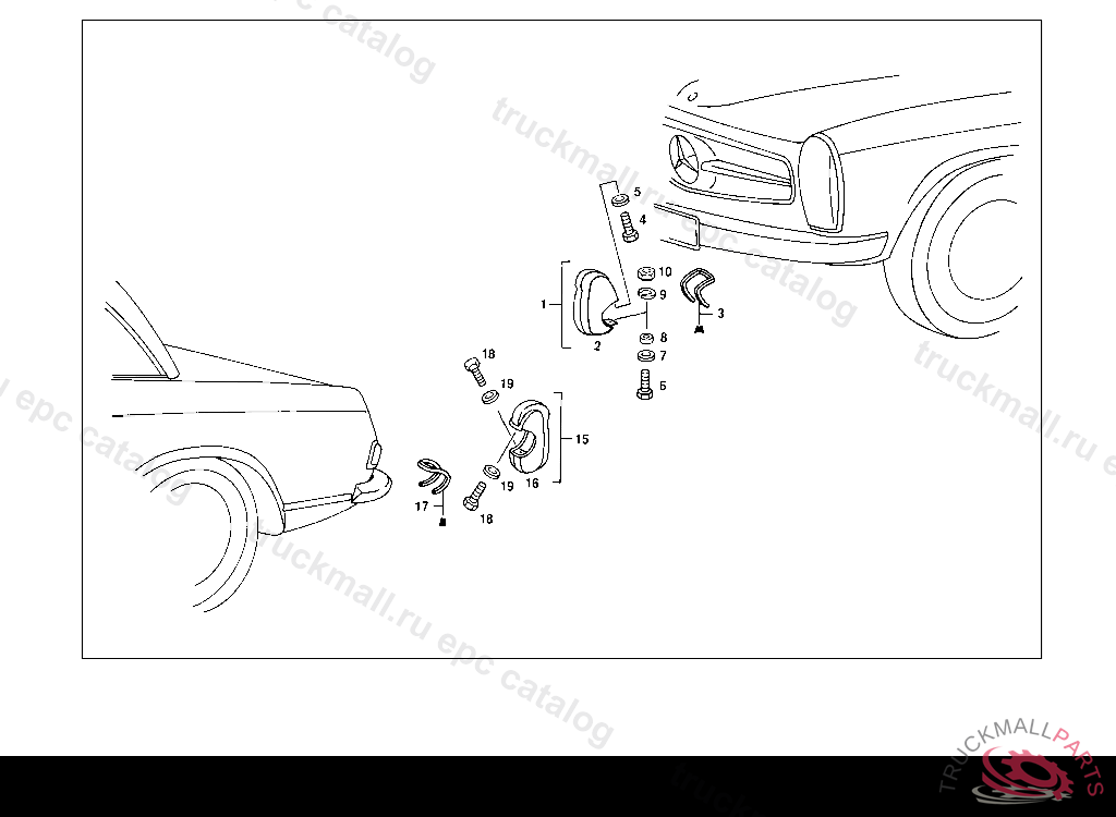 LICENSE PLATE LAMP RIGHT, UP TO CHASSIS: 110.010 130557 110.110 225647 111.010 069692