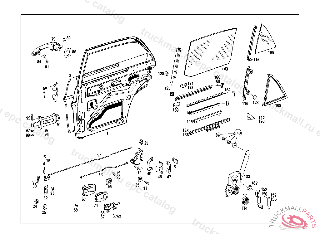 WINDOW REGULATOR LEFT, FROM CHASSIS: 000,002,010 046471 015 047683 100,102,110 111771 103,112 112413 115 051671 005,017,105,107,108,117,119 000001